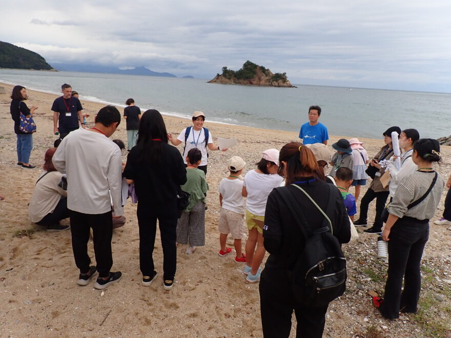 まずは、漂着物の楽しみ方や拾うときの注意点を教わり、いよいよ曽根海岸での“漂着物ハント”へ出発!