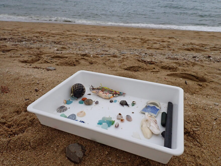 波の音をBGMに、参加者それぞれが気になるものをトレイに集めていきます。