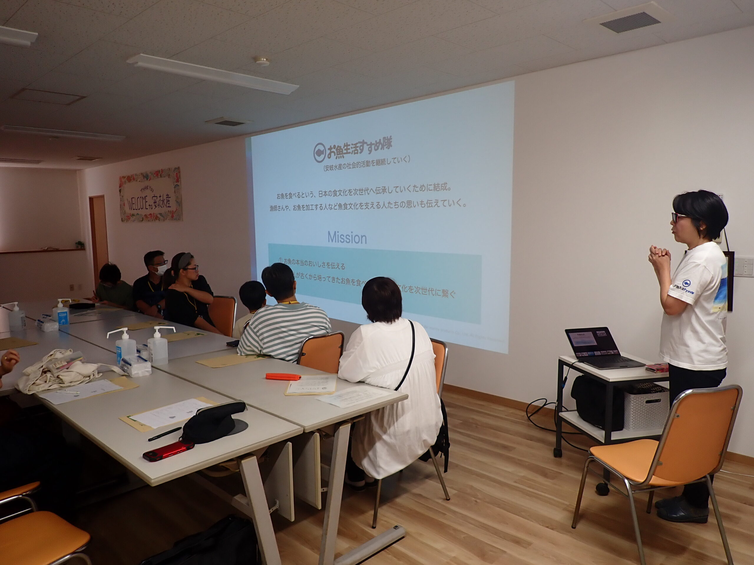 会場は、津田の海沿いにある安岐水産さんの加工場。