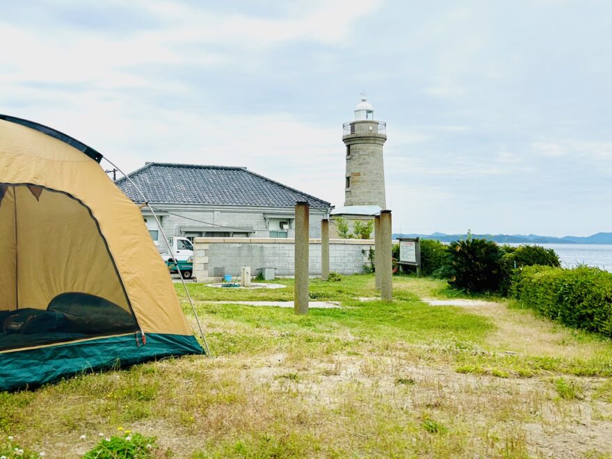 「男木島灯台」は全国的にも珍しい無塗装の石造灯台で、明治時代の建造。
