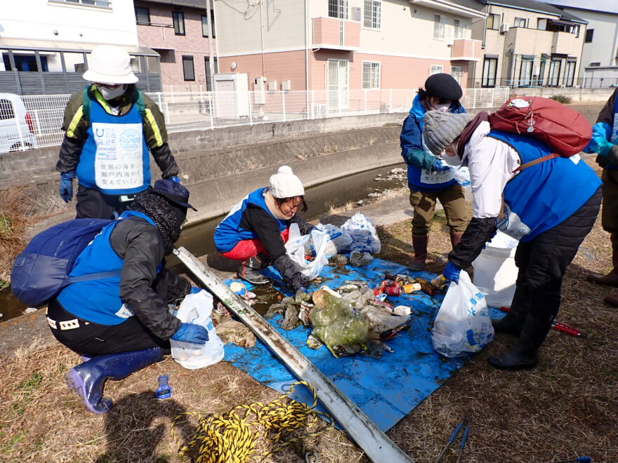 高松市内を流れる御坊川の約12km区間にある散乱ごみをすべて回収し、品目ごとに重量や容量を計測する取り組みです。